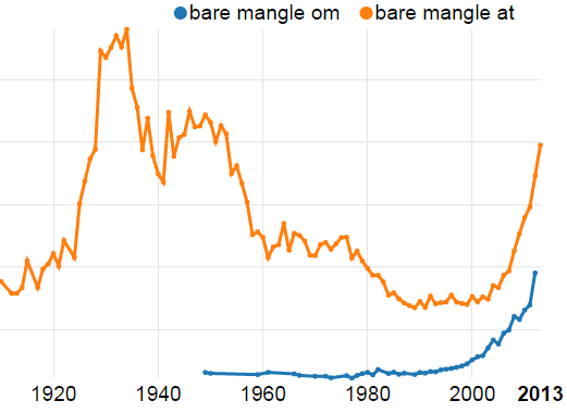 Brukar ein ikkje i døma ovanfor, forskyv ein gjerne tempus til det hypotetiske «at eg ikkje hadde scora» og «at ikkje maten også var». I dag er det ein sterk tendens til å nytte om i staden for at i denne forskyvinga (jamfør «det hadde vore ille om …). Utviklinga kan ein sjå i eit korpus hjå Nasjonalbiblioteket, her: