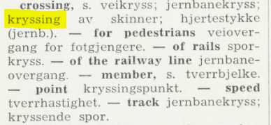 Uansett er det ikke opplagt at en eventuell ning-variant med konkret betydning skal brukes i sammensetninger som kryssingspunkt/krysningspunkt, kryssingssted/krysningssted og kryssingsspor/krysningsspor, for innenfor hver av disse sammensetningene har kryssing/krysning trolig verbal betydning (det å krysse, at noe krysser).