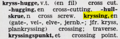 På bokmål brukes likevel krysning ofte om handlingen også.