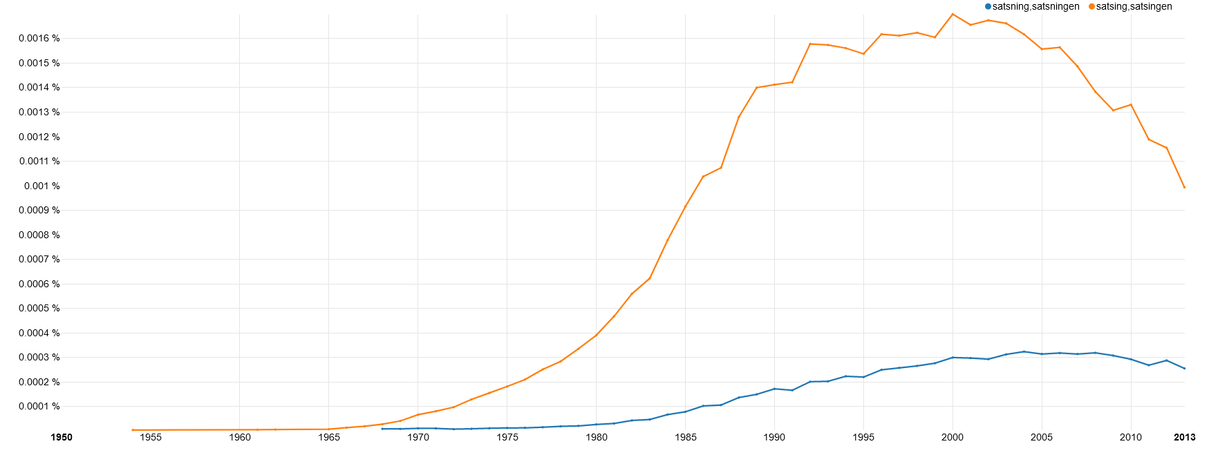 Så har vi en ganske annen akse som legger seg på tvers av den som har prosess og resultat i hver sin ende. Varianten -ning har nemlig holdt seg best i sammensetninger og avledninger, uavhengig av betydning! Utskrivning er altså relativt vanligere enn skrivning alene, slik opplesning og innlesning er vanligere i forhold opplesing og innlesing enn lesning (i generell handlingsbetydning) i forhold til lesing.
