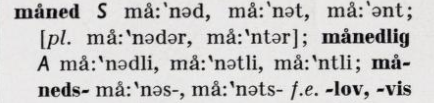 akkurat som himmellegemet. Andre steder er avledningen månad (fra gammelnorsk mánaðr) blitt bevart, med stum d, som