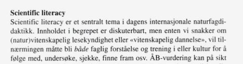 I denne omtalen av scientific literacy nevnes (natur)vitenskapelig lesekyndighet og vitenskapelig dannelse: